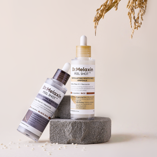 Dr. Melaxin Peel Shot Glow Rice Peeling Ampoule 80ml 2-Pack Bundle (Black Rice & White Rice) Daily Soft Exfoliating Face and Body Scrub Dead Skin Cells Blackhead Remover for All Skin Types